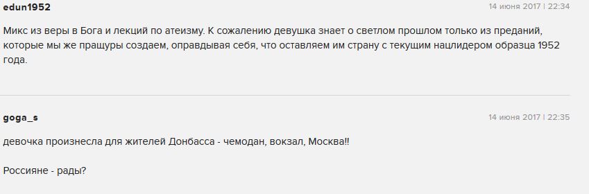 Дагот Опубліковано: 14 червня 2017 Опубліковано: 14 червня 2017 "Хорошие украинцы в рядах ВСУ пи..дят россиян на Донбассе. Плохие украинцы в рядах ОМОНа пи..дят россиян в Москве. От судьбы не уйдёшь."(с)