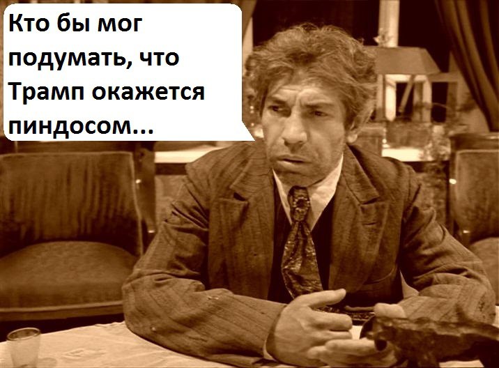 Дагот Опубліковано: 6 липня 2017 Опубліковано: 6 липня 2017 Поговорили) Показать Siemens: - Ааааааааа! Россияне нас обманули! Кремль: - Йопта! Киев: - Ну, не пид@расы? Кремль: - Есть немного! Siemens: - Мы чтим международные стандарты! Россия нас обманула. Киев: - Да поняли мы! Поняли. Кремль: - А нам пофиг! Киев: - Конечно! Вы ж пид@расы! Кремль: - Харе обзываться, майданутые! Киев: - Ок. Но если на вас кто-нибудь наступит, то это явно к деньгам. Кремль: - Але? Вы нас говном назвали? Киев: - Есть немного! Siemens: - Точно! Мы в вас вляпались! И подзаработали. Киев прав. Кремль: - Вы чё? Охренели? Киев: - Не, мы не можем делать тоже, что и Вы. Siemens: - Мы не будем настраивать и брать на гарантию эти турбины. Кремль: - Будем судиться. Siemens: - Вы чёкнулись? Где? Кремль: - В пи ....в суде. Киев: - В вашем случае первый вариант предпочтительнее. Шансов на победу больше. Кремль: - Мы ржем над вами. Киев: - А так там ещё и Лавров с вами? Кремль: - Да. А как догадались? Киев: - По характерным звукам. Кремль: - А вот сейчас было обидно. Вашингтон: - Прекрасная ситуация. Просто замечательная. Siemens: - Простите, а чем она такая замечательная? Вашингтон: - Трахнем по-полной. Ничего личного. Это просто бизнес. Вон Фольксваген тоже попался на шулерстве. Пришлось раскошеливаться. Siemens: - Но нас же обманули??? Вашингтон: - Кто? Siemens: - Пид@расы! Тьфу, Кремль! Кремль: - Так мы это... того... этого... Вашингтон: - Не знаем, как этого, но чувствуем, что скоро вас будут. Кремль: - А почему нас? Киев: - Потому что вы пид@расы! Кремль: - Да вы уже задолбали! Киев: - А ведь мы ещё даже не начинали. Кремль: - Ладно, с вами потом разберёмся. Вашингтон, ау! Давай не нагнетать. Вашингтон: - Мы ещё не начинали. Siemens: - А нам что делать? Вашингтон: - Выкручивайтесь, как хотите, но если будет шанс, то вжарим! Siemens: - Пид@расы! Вашингтон: - Кто??? Siemens: - Кремль, конечно! Кремль: - Опять? Киев: - Надолго, если не навсегда! Вашингтон: - Ну, я держу это на контроле. И ррасконсервировали нефтяные скважины. Будем делать нефть дешёвой. Как в конце восьмидесяти. Заодно и Кремль вжарим. Киев: - Нас устраивает! Кремль: - Нас нет! Киев: - Пид@расам слово не давали. И грустной лошади тоже. Siemens: - Мы что нибудь придумаем. Вашингтон: - Это в ваших же интересах. Киев: - Вашингтон, и про нефть не забываем. Кремль: - А может договоримся? Киев: - С пид@расами договариваться взападло! Кремль: - Ууууууууууууу! PS. Все совпадения случайны. ))