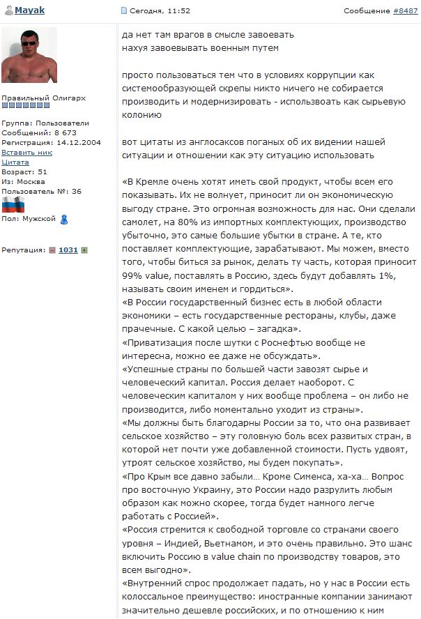 Дагот Опубліковано: 21 липня 2017 Опубліковано: 21 липня 2017 Россияне – это такой народ, который воюет за мир, молится за науку, и пьёт за здоровье. Два Владимира Соловьёва но такие разные взгляды на жизнь! «Равнодушный к своей действительной пользе и действительному вреду, он народ воображает несуществующие опасности и основывает на них самые нелепые предположения. Ему кажется, что все соседи его обижают, недостаточно преклоняются перед его величием и всячески против него злоумышляют... ...Всякого и из своих домашних он обвиняет в стремлении ему повредить, отделиться от него и перейти к врагам - а врагами своими он считает всех соседей. И вот, вместо того, чтобы жить своим честным трудом на пользу себе и ближним, он готов тратить все свое состояние и время на борьбу против мнимых козней. Воображая, что соседи хотят подкопать его дом и даже напасть на него вооруженною рукой, он предлагает тратить огромные деньги на покупку пистолетов и ружей, на железные заборы и затворы. Остающееся от этих забот время он считает своим долгом снова употреблять на борьбу – со своими же домашними». ("Вестник Европы" за сентябрь 1892 года. Автор - Соловьёв, Владимир Сергеевич. 1853-1900гг).