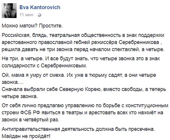 Дагот Опубліковано: 31 серпня 2017 Опубліковано: 31 серпня 2017 Депортация из Украины очередной российской пропагандистки не на шутку взбесила власти РФ. У главы комитета Совфеда по международным делам одиозного Константина Косачева из-за этого случилась настоящая истерика. Он призвал назначить "экстремистами" и "террористами" украинские спецслужбы. Об этом сообщает "Диалог.ua", ссылаясь на LIGAnews.Он назвал "вопиющем и исключительным случаем" арест и выдворение из Украины "журналистки" кремлевского "Первого канала" Анны Курбатовой.При этом Косачев имел наглость сравнить Службу безопасности Украины с террористическим "ИГИЛ". "Методы и последствия их действий все более похожи", - выдал приспешник путинского режима, предложив сделать украинскую спецслужбу запрещенной в РФ.Косачев понадеялся, что "европейские структуры" повлияют на Киев и заставят его не депортировать пропагандистов РФ. "Права человека, включая права журналистов, действуют там только в пламенных речах украинских политиков в адрес западных партнеров с требованием новых денег за примерное воплощение "европейских ценностей"", - не постеснялся заявить путинист.