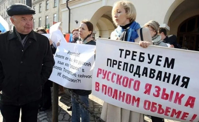 Дагот Опубліковано: 10 листопада 2017 Опубліковано: 10 листопада 2017 Культурная элита Татарстана заняла принципиальную позицию в отношении обязательного изучения татарского в школах региона. Ей противостоят люди с "русскоязычной челюстью". Конфликт набирает обороты. Глава республики Татарстан Рустам Минниханов, выступая на сессии Госсовета по основной повестке "О преподавании и изучении государственных языков Республики Татарстан и родных языков народов, проживающих в Республике Татарстан", заявил: "...мы подготовили вариант, он согласован предварительно со специалистами Министерства образования и науки... Я также с администрацией вёл переговоры, понимание есть". Минниханов заявил указал на то, что татарский язык будет изучаться по 2 часа в неделю в качестве обязательного предмета. Согласно сообщениям российских СМИ, русские родители школьников в Татарстане в последние месяцы стали без конца инициировать коллективные обращения к руководству школ, министерств образования Татарстана и России, прокуратуры, отказываясь от обязательного проведения уроков татарского языка для их детей или требуя сократить количество уроков этого предмета.Этому процессу активно противостоит патриотическая общественность республики, но зато со всех сторон подогревают "скрепные" общественные организации, которые уверены: изучение языка коренного народа недостойное занятие для русского имперца, даже маленького. Правительство РФ подогревает подобные настроения в регионе: для Кремля важно задушить малейшие попытки народа сохранить свою национальную идентичность.Между тем, конституцией Татарстана в качестве государственных языков республики установлены русский и татарский языки. Соответственно татарский язык как обязательный предмет подлежит изучению во всех общеобразовательных учреждениях Татарстана. В татарском сегменте социальных сетей набирают популярность хештеги и мотиваторы, обращающие внимание на проблему татарского языка в республике - #ОстановитеЯзыковойГеноцид, в том числе и на английском языке, чтобы обратить внимание на беду мировой общественности.Появились и плакаты с явными признаками сопротивления московской оккупации татарского народа – татарской национальной революции.В изданиях большого тиража с подписью "В бой за татарский язык готова вступить директор гуманитарной гимназии-интерната для одарённых детей в Актаныше Рузалия Гарипова" опубликована фотография мужественной женщины, не побоявшийся репрессий директора с соответствующей надписью большими буквами на татарском языке и указанием того же хэштега #ОстановитеЯзыковойГеноцид (с англоязычным аналогом). Ее поддержали многие другие татары и опубликовали свои фото с аналогичным плакатом и хештегом. Борьба продолжается. Ранее "Диалог" сообщал читателям о языковом конфликте в Татарстане, там заявляли, что татары к русским относятся "как в бандеровской Украине".