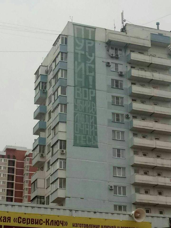 Outlawif Опубліковано: 5 лютого 2018 Опубліковано: 5 лютого 2018 Смелые ребята. Это ж на крышу надо было влезть, там как-то закрепить сей скрижаль, причем ночью наверное...
