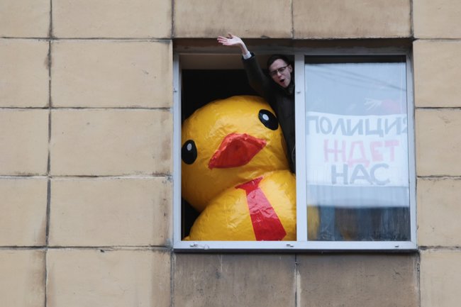 Дагот Опубліковано: 27 лютого 2018 Опубліковано: 27 лютого 2018 В Петербурге участника «Забастовки избирателей» приговорили к 25 суткам ареста. Он показывал из окна резиновую уточку Фонтанка.ру 13:59, 26 февраля 2018 Надежный источник Житель Санкт-Петербурга Артем Гончаренко получил 25 суток административного ареста за участие в акции 28 января. Смольнинский суд признал Гончаренко — активиста движения «Весна» — виновным в повторном нарушении порядка проведения митингов (ч. 8 ст. 20.2 КоАП РФ). Как сообщил «Интерфаксу» федеральный координатор движения «Весна» Богдан Литвин, Гончаренко обвинили в том, что он во время акции в поддержку «Забастовки избирателей» 28 января «демонстрировал надувного утенка из окна дома рядом с площадью Пролетарской диктатуры». Анатолий Медведь / SIPA / Scanpix / LETA Гончаренко был задержан в Петербурге 25 февраля накануне марша памяти Бориса Немцова. Власти Санкт-Петербурга согласовать марш отказались. Акции в поддержку «Забастовки избирателей», устроенные сторонниками Алексея Навального, прошли 28 января в нескольких десятках городов России. В Москве и Санкт-Петербурге акции не были согласованы и сопровождались задержаниями. В феврале несколько сотрудников штаба Навальногои Фонда борьбы с коррупцией (ФБК) были задержаны за призывы к несогласованной акции 28 января. 22 февраля глава штаба Навального Леонид Волков был признан виновным в повторном нарушении порядка проведения митинга и приговорен к 30 суткам административного ареста. Утка — один из символов расследования ФБК о «тайной империи» премьер-министра Дмитрия Медведева. Это связано с тем, что в резиденции в Плесе, которой пользуется Медведев, обнаружили отдельный домик для утки.