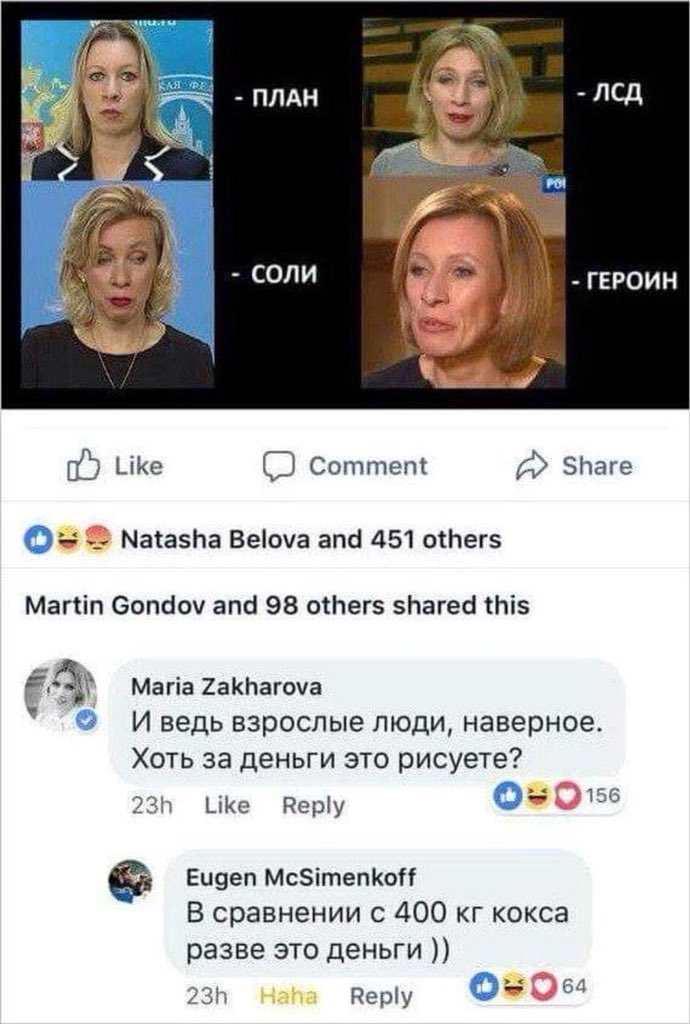 Главмех Опубліковано: 28 лютого 2018 Опубліковано: 28 лютого 2018 Garon, Симметричный ответ парашенской пропаганды)) А ведь пока мы ржем над этой хуетой, вата в параше ликует. Похуй, что цинк им возят, главное что по телеку сказали о возмездии. :dc: Я уже писал Телевизор говорит не было никаких Вагнеровцев никого не убивали И через тридцать секунд им показывают эту хуету как исребитель, не т не так а ИСТРЕБИТЕЛЬ чуть ли не ковровой бомбардировкой уничтожает сотни тысяч американцев в отместку за вагнеровцев.