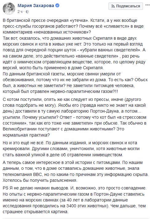 Голодный котег Опубліковано: 6 квітня 2018 Опубліковано: 6 квітня 2018 ПоказатьСША внесли в санкционный список российских бизнесменов и официальных лиц Отмечается, что в санкционный список внесены бизнесмен Олег Дерипаска, сенатор Сулейман Керимов, директор Российского института стратегических исследований Михаил Фрадков, председатель правления ВТБ Андрей Костин и президент футбольного клуба «Зенит» Сергей Фурсенко. Также под американские санкции попали глава МВД России Владимир Колокольцев, глава «Газпрома» Алексей Миллер и председатель комитета Совета Федерации по международным делам Константин Косачёв. Санкции введены и против секретаря Совета безопасности России Николая Патрушева. Всего — семь российских бизнесменов и двенадцать компаний, а также семнадцать российских чиновников. В санкционный список попали Олег Дерипаска, Михаил Фридман, Алексей Дюмин, Сергей Фурсенко, Сулейман Керимов, Кирилл Шамалов, Виктор Вексельберг, Андрей Акимов, Владимир Богданов, Олег Говорун, Владимир Колокольцев, Константин Косачев, Андрей Костин, Алексей Миллер, Николай Патрушев, Владислав Резник, Игорь Ротенберг, Евгений Школов, Андрей Скоч, Александр Торшин, Владимир Устинов, Александр Жаров и Виктор Золотов. Путин уволил одиннадцать генералов МВД, ФСИН, МЧС и СК Владимир Путин снял с должностей одиннадцать генералов из структур МВД, ФСИН, МЧС и СК, соответствующий указ опубликован на интернет-портале правовой информации . пригожина нет. странно
