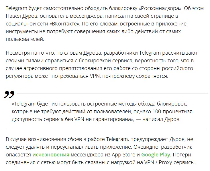 OlegRO Опубліковано: 13 квітня 2018 Опубліковано: 13 квітня 2018 ФСБ прикрыло проект ФСБ :( 0utlaw, надеюсь , все выросли из детсадовских войнушек и понимают, что нет большего доверия, чем гонимым режимом впрочем, это всё писали по ссылкам, что я давал ранее Telegram дали 15 дней на предоставление информации, но компания уведомила Роскомнадзор в невозможности сделать это по техническим причинам. Срок истек в минувшую среду. Ранее сообщалось, что аналогичные сведения не подали и другие мессенджеры - Viber, Whatsapp, Facebook. В них реализованы такие же технические решения, не позволяющие предоставлять сторонним лицам ключи шифрования. Однако об их возможной блокировке в РФ речи не идет. В решении же Таганского суда сказано, что Telegram так и не доказал невозможность предоставить ключи https://1prime.ru/articles/20180413/828715695.html пс. приписка в скрине "как обойти блокировку" особенно мила все плюют на решения суда и с центральных СМИ учат обходить блок и мессенджер был готов изначально к такому решению суда не будьте хомячками война идет на высочайшем уровне даже если дурика убьют Новичком телеграм будет гбшнoй дыркой
