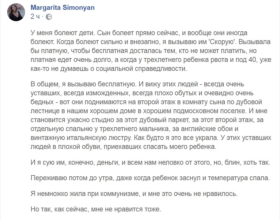 Дагот Опубліковано: 22 квітня 2018 Опубліковано: 22 квітня 2018 Маргарита Симонян, которая пилит 18 млрд. на втирание иностранцам "правды" о России, сильно расстраивается когда качество российских услуг не соответствует ее высокому статусу. В этот раз ее расстроили отечественные врачи — бедные и убогие, в плохой обуви. https://vata.d3.ru/ispoved-soderzhanki-1580772/...Управление