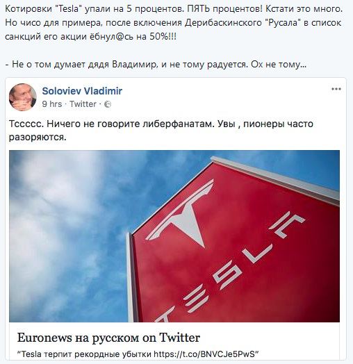 MrGreenZ Опубліковано: 4 травня 2018 Опубліковано: 4 травня 2018 Показать Типичный пример свинособаки. Радуется падению просто потому, что завидует черной завистью. При том, что тесла вообще ничего плохого параше не сделала.