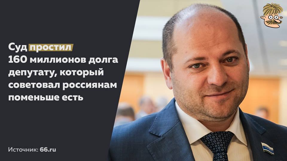 Дагот Опубліковано: 29 травня 2018 Опубліковано: 29 травня 2018 Суд Саратова признал городскую организацию диабетиков иностранным агентом и оштрафовал на 300 тыс. В деятельности организации инвалидов, больных сахарным диабетом усмотрели признаки подрыва авторитетагосударства Поводом для проверки послужил сигнал студента СГМУ Никиты Смирнова Показать Сегодня во Фрунзенском районном суде было оглашено решение по административному делу региональной организации инвалидов, больных сахарным диабетом, которую прокуратура требовала признать иностранным агентом (статья 19.34 КаАП РФ). Дело рассматривалось с января 2018 года. Поводом для проверки стало заявление студента СГМУ Никиты Смирнова, который заявил, что посчиталгражданским долгом подать сигнал. Позже он отозвал заявление, но проверка прокуратуры была проведена и делу был дан ход. Экспертную оценку деятельности организации проводил доктор исторических наук, профессор кафедры истории, политологии, социологии и сервиса СГЮА Иван Коновалов. Он нашел в деятельности диабетиковкомпромат, черный пиар и технологию роспуска слухов, а также связь с электоральными циклами. От проведения экспертизы уклонились Поволжский институт управления РАНХиГС и Казанский межрегиональный центр экспертиз. В итоге 25 мая эксперты СГЮА Елена Колоярцева и Виктор Купин сделали заключение о наличии в деятельности организации инвалидов, больных сахарным диабетом признаков политической деятельности. Общий объем иностранного финансирования, по версии гособвинения, составил 715 тысяч рублей. После 5,5 месяцев судебного разбирательства судья Мария Агишева огласила решение. Суд признал саратовскую региональную общественную организацию инвалидов, больных сахарным диабетом иностранным агентом. В качестве наказания суд назначил штраф в размере 300 тысяч рублей. Представители общественной организации заявили, что намерены обжаловать решение вплоть до Верховного суда РФ.https://nversia.ru/news/sud-priznal...-agentom-i-oshtrafoval-na-300-tysyach-rubley/ Показать Гаффнер теперь ничего никому не долженФото: Владимир Жабриков © URA.RU Сегодня, 28 мая, Арбитражный суд Свердловской области освободил депутата Заксобрания региона Илью Гаффнера от уплаты около 160 млн рублей долга кредиторам. Банкротство прекращено вместе с окончанием конкурсного производства. В ходе банкротства депутата, которое было признано еще 13 июля 2016 года, его кредиторы вообще ничего не получили. На сайте Арбитражного суда сообщается, что рассмотрение дела о несостоятельности (банкротстве) организаций и граждан в отношении Ильи Гаффнера завершено. В конкурсную массу должника (все имущество должника, имеющееся на дату открытия конкурсного производства и выявленное в ходе конкурсного производства) было собрано 528 тысяч 720 рублей 78 копеек, рассказал финансовый управляющийИльи Гаффнера Александр Осинский. Сюда же вошли полученные от продажи единственного имущества народного избранника — ружья Browning B45 и охотничьего огнестрельного оружия с нарезным стволом Benelli Argo, — 73 тысячи рублей. Остальная сумма конкурсной массы — зарплата народного избранника с июля по сентябрь 2016 года в размере 441 тысячи рублей, которую он утаил от финансового управляющего, за что и был оштрафован. Когда Гаффнер уже официально был банкротом, то получал зарплату на руки в кассе, не имея на это права. В итоге 