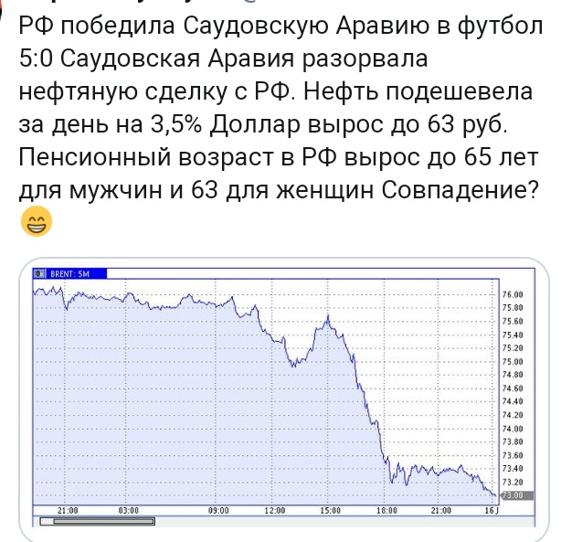 Дагот Опубліковано: 16 червня 2018 Опубліковано: 16 червня 2018 Саудовская Аравия сворачивает нефтяную сделку с Россией | https://finanz.ru https://www.finanz.ru/novosti/birzhevyye-to...ssha-1027022886 …