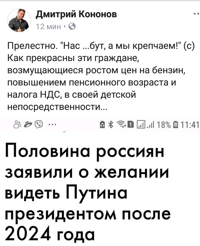 Дагот Опубліковано: 17 червня 2018 Опубліковано: 17 червня 2018 А.Венедиктов: Итальянская финансовая полиция начала проверку особняка В.Соловьёва на озере Комо. Фраза из комментов под новостью: "Допи...елся черноротый..." Denis Andrus И опять #мудіаль После матча с Россией таксист отвез болельщика Саудовской Аравии в отель за 30 тысяч рублей (500 долларов). У болельщика из Японии украли 800 долларов, кредитные карты и документы, но принять заявление у него полиция не может, потомучто не могут найти переводчика. В Москве, после избиения двух геев из Франции, за несанкционированный митинг протеста был задержан гей из Великобритании. У гражданина Уругвая украли 1000 долларов, 1500 евро, документы, билеты на 3 матча пока он ел в ресторане быстрого питания. У болельщиков из Ирана 1000 долларов и 100 евро украли прямо из номера отеля. Два гражданина Китая были задержаны за попытку использовать квадрокоптер для съёмки фан-зоны в Санкт-Петербурге. Жильцы многоквартирного дома на улице Брусилова в Москве выбросили из окна 26-летнего футбольного болельщика из Нигерии за то, что он слишком сильно шумел. В Москве таксист на своем автомобиле въехал в толпу. Пострадали 3 болельщиков из Мексики, один из них в очень тяжёлом состоянии. Предварительная версия - техническая неисправность автомобиля. Плавно от ограблений и побоев россияне переходят к тяжким телесным. Я тоже считаю, что учить приезжих надо по всей строгости.
