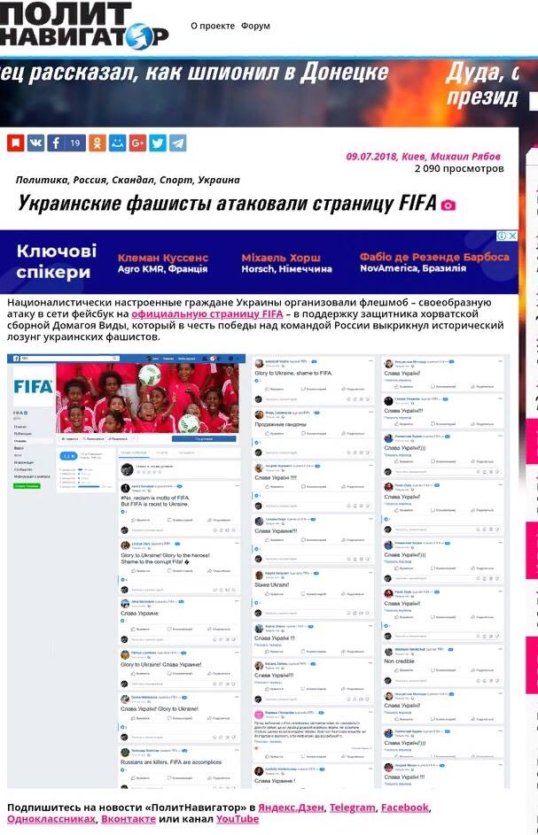 Дагот Опубліковано: 10 липня 2018 Опубліковано: 10 липня 2018 Таки допекло - ФІФА видалила вкладку "відгуки" із своєї сторінки у "Фейсбуку". Проте на місце старому тут же прийшов новий флешмоб: скаржитись на сторінку ФІФА за розпалювання національної ненависті. А й дійсно - виносити попередження футболісту за гасло "Слава Україні!" - це що, не розпалювання?))