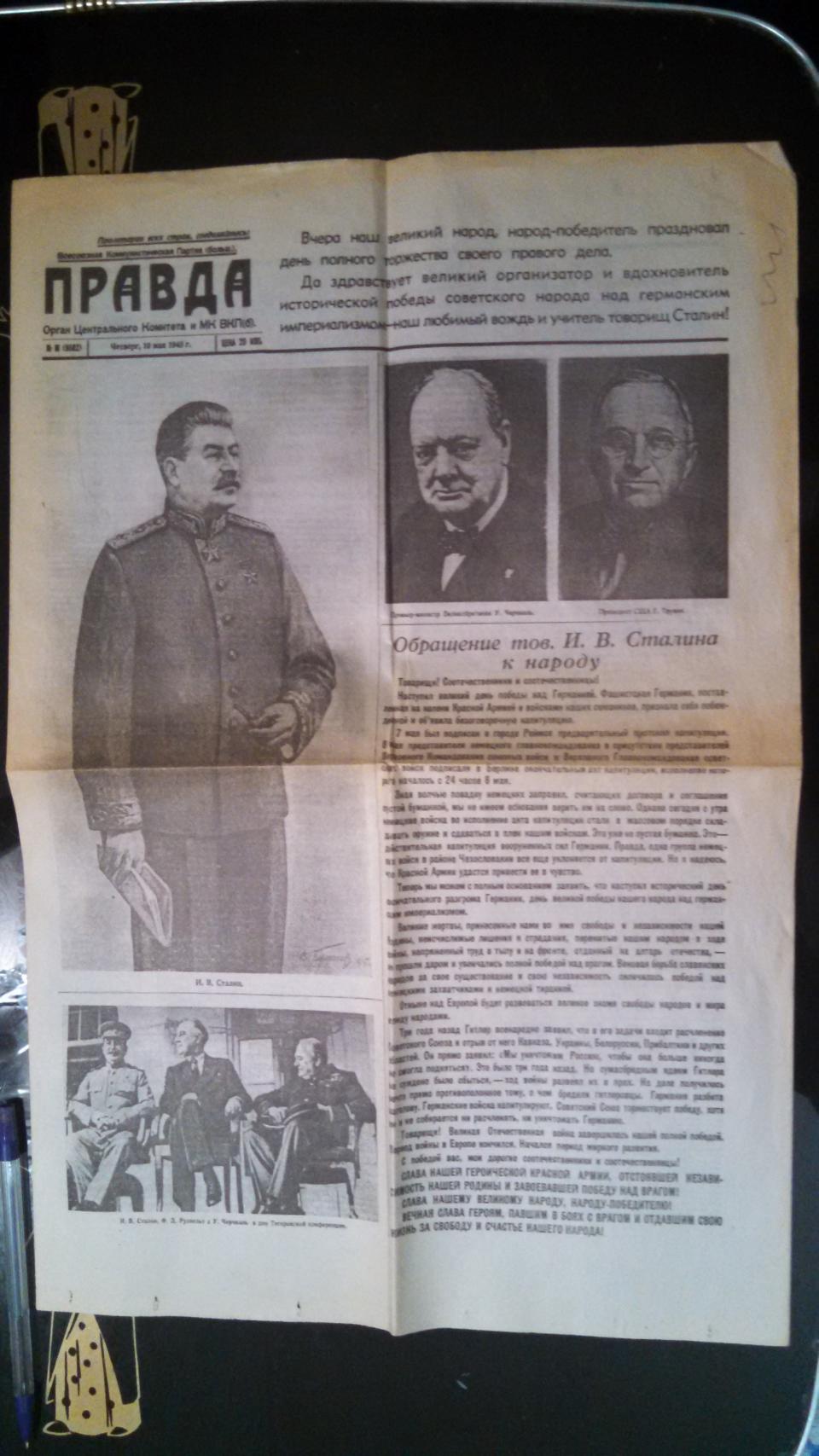 Исторический выпуск газеты "Правда" от 10 мая 1945 года.