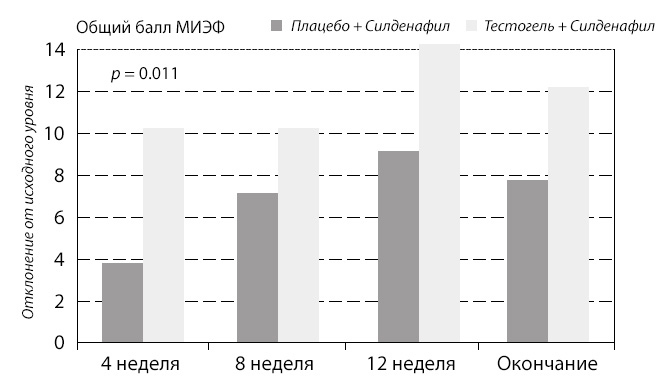 Kryo Опубликовано 26 июня, 2016 Автор Опубликовано 26 июня, 2016 Лечение эректильной дисфункции при андрогенодефиците Если у мужчины наблюдается нарушение половой функции, обусловленное андрогенным дефицитом, а также эректильная дисфункция (ЭД), лечение необходимо начинать с нормализации уровня тестостерона. Нормализация уровня андрогенов путем назначения гормональных препаратов (например, тестостерона ундеканоата), позволяет значительно повысить эффективность применения ингибиторов фосфодиэстеразы 5 типа (ФДЭ-5) и результаты терапии ЭД. Показать Влияние тестостерона на эректильную функциюВ некоторых научных работах также демонстрируется влияние тестостерона на эректильную функцию: после восстановления уровня тестостерона наблюдался достоверно лучший ответ на терапию Силденафилом (100 мг) по сравнению с мужчинами, принимавшими Силденафил и плацебо (рис. 1). Рис. 1 — Изменение эректильной функции (оценка по шкале МИЭФ-5) у мужчин с гипогонадизмом, получающих терапию Силденафилом и плацебо (1-я группа) и Силденафилом и Тестогелем (2-я группа) (по материалам Shabsigh R. et al, 2004). При неэффективности монотерапии, направленной на устранение адрогенодефицита, по отношению к нормализации половой функции, целесообразно комбинирование гормональной терапии с приемом вазоактивных препаратов. Применение вазоактивных препаратов рекомендуется начинать не раньше, чем через 1-1,5 мес. после восстановления нормального уровня тестостерона. Такая последовательность лечения обусловлена ролью тестостерона, как главного катализатора сексуального возбуждения — первого и главного этапа в возникновении эрекции. К тому же, по последним данным, андрогены участвуют в процессе поддержания выработки оксида азота (NO2), который необходим для возникновения эрекции.Таким образом, обязательным условием эффективности ингибиторов ФДЭ-5 является нормальный гормональный фон мужчины, т. е. отсутствие андрогенного дефицита.Современные представления медицины указывают на то, что тестостерон способен оказывает непосредственное влияние на структуру кавернозных тел и нервов. Это подтверждается экспериментом над животными, когда кастрация приводила к изменению структуры кавернозных нервов.Ряд исследований подтвердили, что снижение уровня андрогенов провоцирует повышенное отложение жировых клеток в кавернозных телах. Это препятствует механизму запуска эрекции ввиду возникновения венозной недостаточности, снижения притока крови и эластичности кавернозных тканей.Несмотря на немногочисленные наблюдения, уже сейчас можно утверждать, что лечение ЭД у пациентов с гипогонадизмом препаратами тестостерона ведет к нормализации структуры кавернозных тел, улучшению притока крови и устранению венозной недостаточности, и, в результате, восстановлению эрекции или повышению эффективности ингибиторов ФДЭ-5. Монотерапия ингибиторами ФДЭ-5 в таких случаях неэффективна.Заместительная терапия тестостероном восстанавливает структуру кавернозных тел, улучшает приток крови и устраняет венозную недостаточность.Низкий уровень тестостерона играет важную роль в возникновении ЭД: уменьшение расслабления гладкомышечных клеток кавернозной ткани; снижение выработки NO2; увеличение апоптоза гладкомышечных клеток; увеличение количества адипоцитов; уменьшение полового влеч