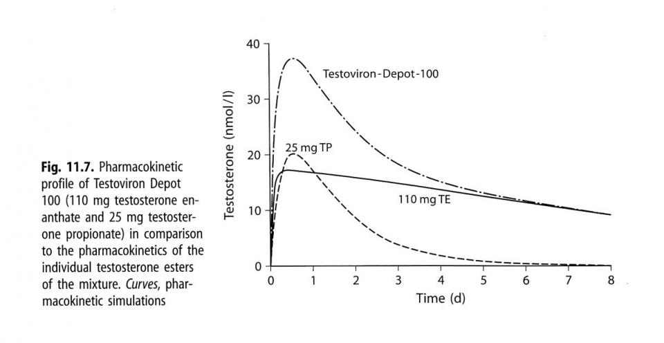 andreyyy Опубликовано 10 октября, 2018 Опубликовано 10 октября, 2018 С тестом всегда просто - сдал анализ и понял что к чему. на гзт на хрен какой день трудно понять, какую долю там занимает свой, есть ли он там вообще. По идее когда концентрация сильно падает, если организм еще в состоянии вырабатывать, он должен начинать подключаться. Кстати, я не перепутал. Видимо, ранее был Тестовирон депот - комбинированный препарат (энантат плюс пропионат). Я так понял, аналог российского Тэстената ( вряд ли он еще выпускается, правда). Вот скрин Но тут фармакокинетика тестовирона, который комбинированный. Если речь о том, в котором только энантат, то смотрим, конечно, на график ТЕ