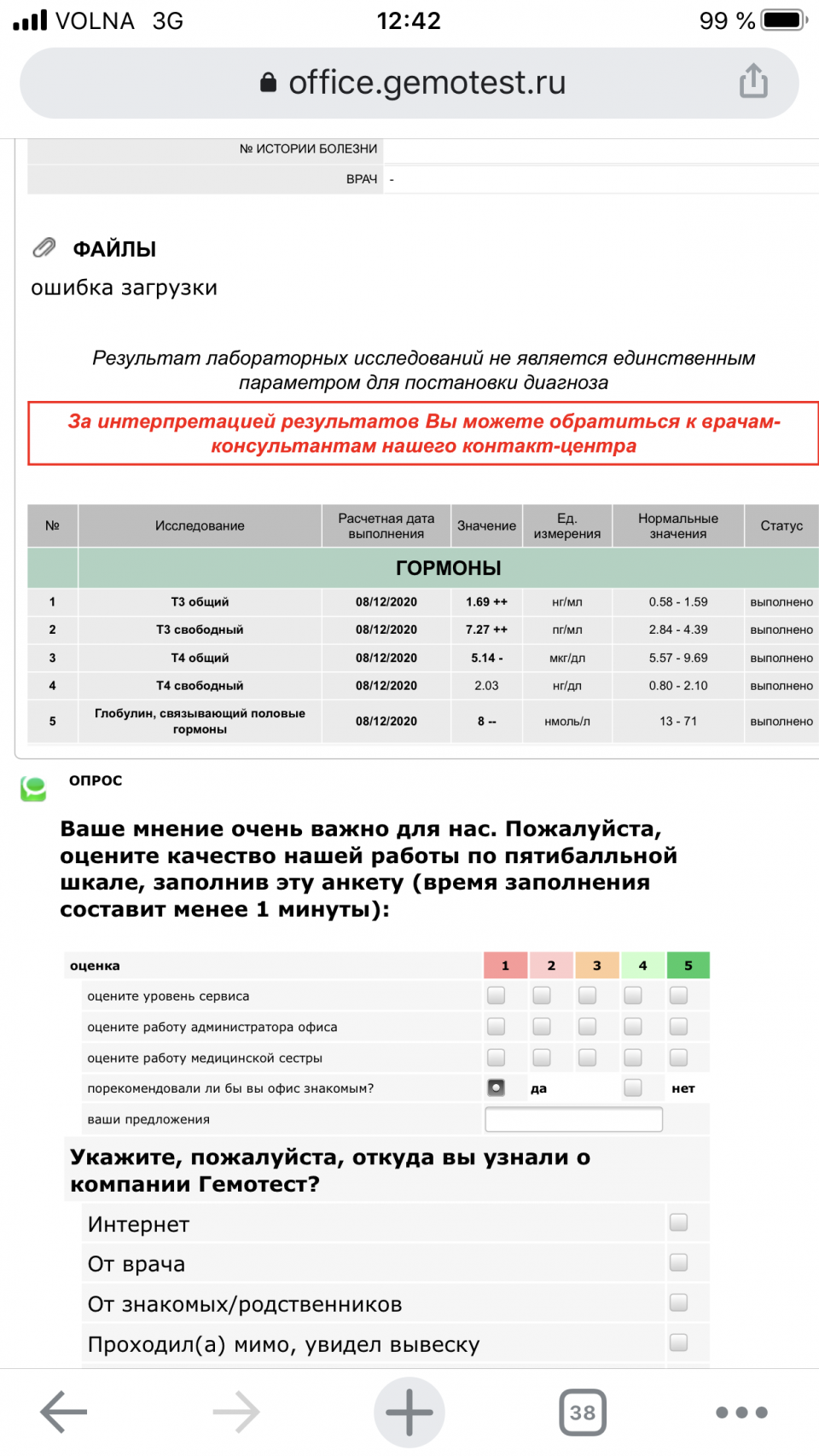 Dimaskrimea123 Опубликовано 8 декабря, 2020 Опубликовано 8 декабря, 2020 Вот и пришли результаты анализов. Это при приеме т3- 100мкг и т4- 200мкг. Сдавал чере 5,5 часов после приема т3.