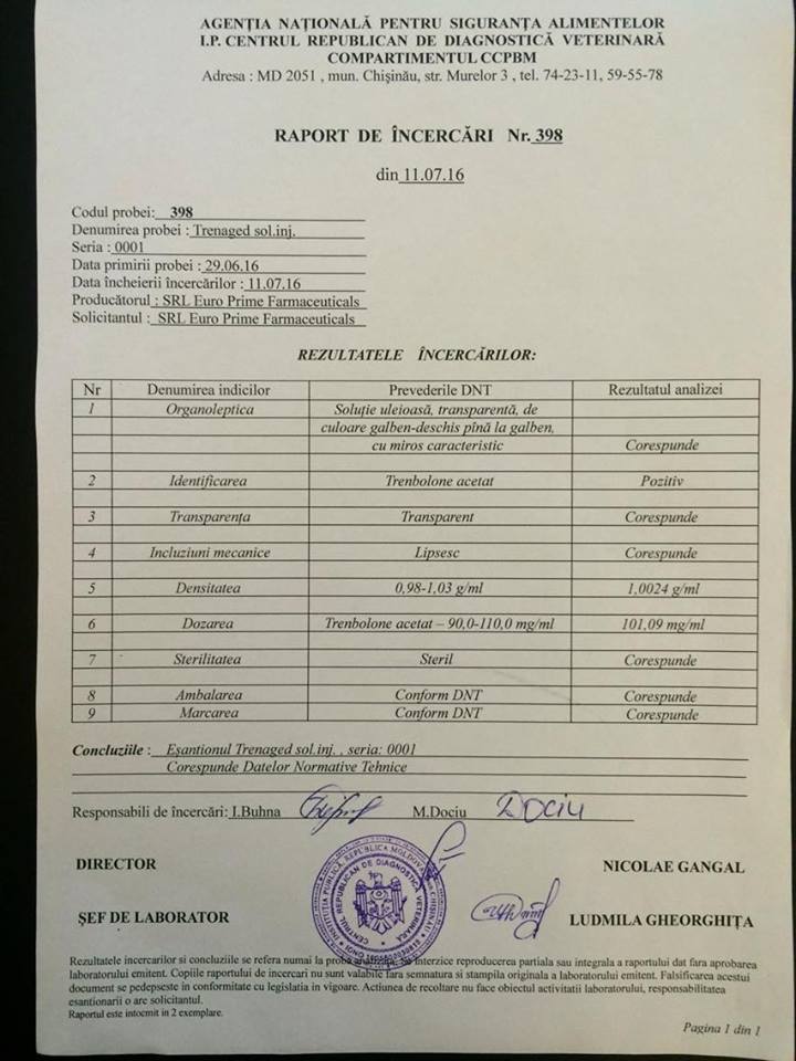 EPF Опубликовано 11 июля, 2016 Опубликовано 11 июля, 2016 Метандиенон EPF идеальный результат - 10,59 mg/t Strombaged tab - 10.06 mg станозолола в таблетке. Тренболон Ацетат EPF - 101.09 Mg/ml