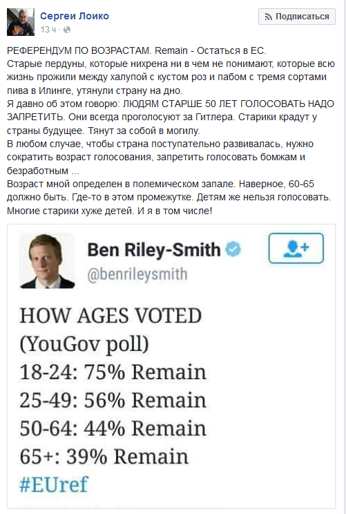 XXR XXX Опубликовано 24 июня, 2016 Опубликовано 24 июня, 2016 Пидарасы московские раскудахтались. http://kp.ua/life/543287-pochemu-velykobry...et-tuda-vstupyt щас польется со всех щелей как в ЕС погано жить. Шанс для Хуйла расшатать Европу, а в голову украинцам насыпать гомна про проблемы ЕС если он действительно так думает,то баран он полный)))
