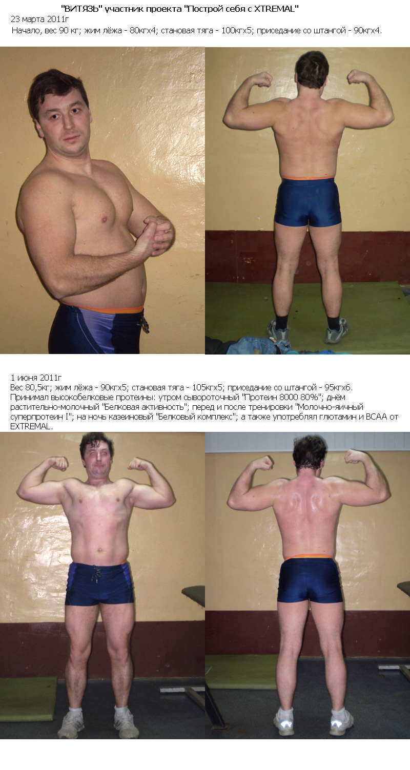 extremal Опубліковано: 23 червня 2011 Автор Опубліковано: 23 червня 2011 Интересно, а где остальные товарищи? В начале эксперимента их же было двадцать штук, готовых покорить Олимп "прямо щас". Ну их было всегда шестеро! Один отсеялся через 2-а месяца по семейным обстоятельствам и мы взяли другого спортсмена. А остольные кушают спортпит, качаются и ростут тоже. Читайте наш форум, я же не буду сюда все достижения перетягивать.