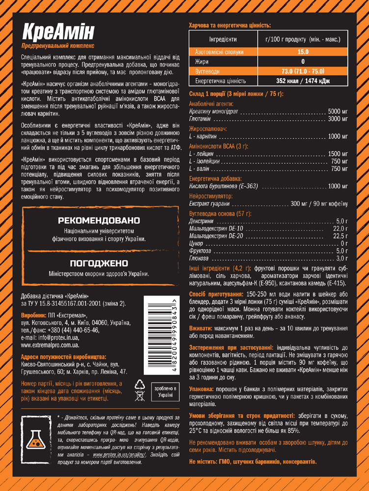 extremal Опубликовано 22 января, 2013 Автор Опубликовано 22 января, 2013 (изменено) Всем привет. Хочу презентовать прототип нового продукта - предтреника "КреАмин" Выпуск планируется на конец февраля. Цена пока не известна. Ориентир 200 грн \ 1575 г = 127 грн\кг. Для постоянных покупателей интернет магазина protex.in.ua скидка 10%, для форумчан скидка 5%. Изменено 22 января, 2013 пользователем extremal