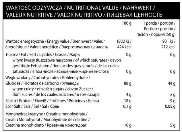 Edos Опубликовано 22 сентября, 2016 Опубликовано 22 сентября, 2016 ЦЕНА - 150грн ActivLab Crea Carbo — это высокоуглеводный креатиновый комплекс для полноценного восстановления организма, повышения выносливости и силовых показателей. В основе продукта лежит креатин моногидрат — наиболее изученная и вместе с тем востребованная форма креатина. Ее выгодно дополняют быстрые углеводы, выполняющие функции транспортных агентов. Они помогают «провести» креатин через цепочку химических реакций с минимальными потерями. А значит — повысить КПД готового продукта на 10-30%. Действие ActivLab Crea Carbo Нормализация обменных процессов Восстановление запасов фосфокреатина в мышцах Ресинтез АТФ Улучшение подпитки миоцитов (мышечных волокон) Профилактика обезвоживания организма Мощный памп Повышение силовых показателей Развитие мышечной выносливости Улучшение самочувствия после тренировок Качественное восстановление и рост мышц Активные компоненты ActivLab Crea Carbo Основу анаболического комплекса составляет креатин — белковый агент, участвующий в ресинтезе аденозинтрифосфата. В составе продукта он присутствует в форме моногидрата. Такая структура позволяет сохранить высокую биологическую доступность креатина и вместе с тем защитить его от преждевременного окисления в ЖКТ. Сохранению рабочих концентраций, а значит — и свойств, креатина также способствуют быстрые углеводы, дополняющие основную матрицу продукта. На 5 г креатина приходится более 40 г углеводов с высоким гликемическим индексом. Это вполне достаточно, чтобы нормализовать обменные процессы и обеспечить 99% абсорбцию креатина. Входят в состав ActivLab Crea Carbo и белковые фракции. Они помогают предотвратить развитие катаболизма и эффективно заполняют аминокислотный пул. Если у вас нет возможности полноценно и сбалансировано питаться до и после тренировок, обратить внимание на ActivLab Crea Carbo. Ведь этот продукт как нельзя лучше сочетает функции гейнера и креатина. Преимущества ActivLab Crea Carbo Сбалансированный состав (креатин + белки + углеводы) Тщательно подобранные концентрации нутриентов Совместимость со всеми типами БАД Отсутствие гендерных противопоказаний и побочных эффектов Доступная цена Состав ActivLab Crea Carbo на 1 порцию (50 г): Калории — 212 Ккал Углеводы — 44 г (мальтодекстрин) Креатин моногидрат — 5 г Вспомогательные компоненты: красители, регуляторы кислотности, ароматизаторы. Как принимать ActivLab Crea Carbo Принимать креатиновый комплекс рекомендуется до и после тренировок, по 1-2 порции в день. Смешивать порошок следует с водой в пропорции 50 г концентрата (2 мерн. ложки) к 200-300 мл жидкости.