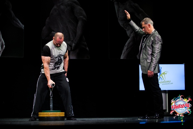 31 reps CoC#3 20 mm block set; 12 reps CoC#3.5 20 mm block set; T9 (Tetting Grand Elite) 4 reps 20 mm block set - both hands; Little Big Horn on contest - 111.2 kg; on training - 136 kg ; Inch hold 64 sec; FBBC 3'' dumbbell handle - 95.8 kg=211 lbs CoC#4 4 reps 20 mm block set right hand & 10 reps MMS. GHP certification Level 9 - 2 reps - 3rd place. Official World Record on axle Ironmind double overhand deadlift - 236.1 kg ; Double Inch Dumbbells walk - 40.3 m - 132 feets. Millennium Dumbbell 40 singles both hands for 1 hour, 6 reps right hand strict |