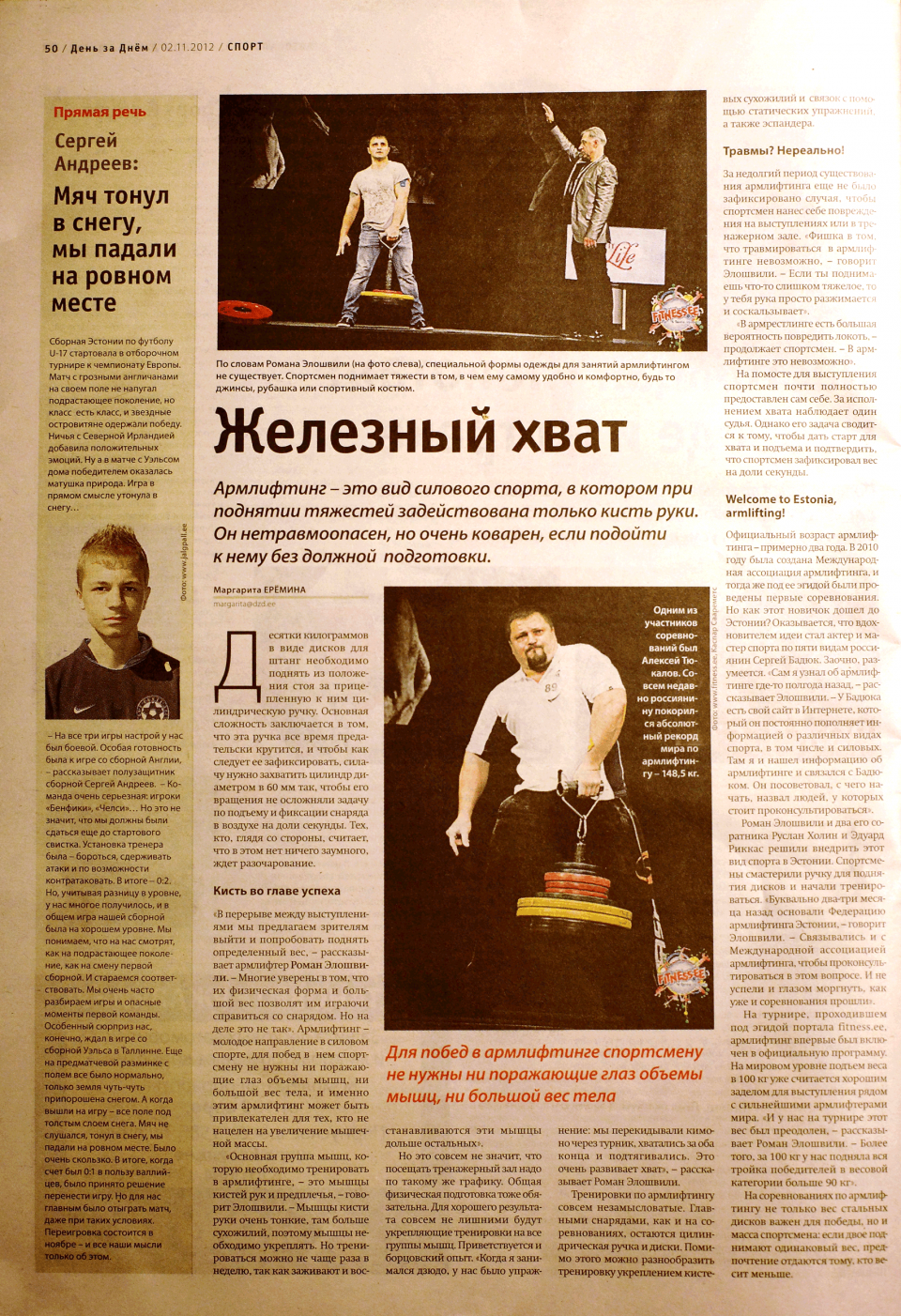 Об эстонском армлифтинге: статья из газеты "День за днем"