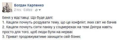 Итак, с одной стороны мы видим злого олигарха Коломойского. В чем его зло? Год назад Коломойский и его подельники придушили народное волеизъявление поребриков и ваты в Днепропетровской области, превратив Днепр в форпост, фронтир и вообще главную, если не единственную, опору Украины на востоке. Злой олигарх публично обозвал Путина плохим словом и стал вхож в расстрельные списки кремлевских пропагандонов и более радикальных спецслужб под первым номером. «Заслугою Коломойського стало перетворення Дніпропетровська на центр логістики АТО. Звідси вилітала авіація, йшли конвої з пальним і їжею, тут родичі впізнавали тіла загиблих», - написал вчера Юрий Луценко, почему-то употребив, правда, прошедшее время, - возможно, сейчас быть центром логистики АТО уже не модно. Так или иначе, есть у Коломойского один недостаток, который делает невозможным его дальнейшее пребывание у руля, - он матюкается, а зачем новой европейской Украине нужен «форпост», чей губернатор матюкается на журналистов, да еще и не хочет извиняться?