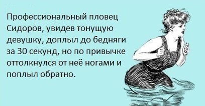 ахаха, ну щас буду еще на пляже в полную силу валить ) ноги работают, но в основном только для того, чтобы быть у поверхности и не тонуть. с ногами было бы совсем чуть-чуть быстрее, но в разы утомительнее - проще усилить мощность гребка или немного увеличить темп. но кому оно надо во время купания. Ноги-большой плюс дают. Во время купания понятно шо не та техника, но все же кинулось в глаза. |