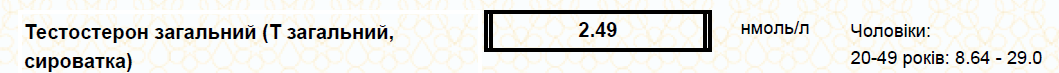 Тестостерона ещё меньше стало) был почти 5-ка. Чего так?.. 2,5 против 5 - это погрешность от внешности медсестричкине обращай внимания -------------------- |