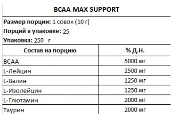 Также производитель добавил в состав BCAA Max Support аминокислоту таурин. Исследования показывают, что прием аминокислот ВСАА вместе с таурином не только способствует мышечному росту, но и ускоряет сжигание подкожного жира.