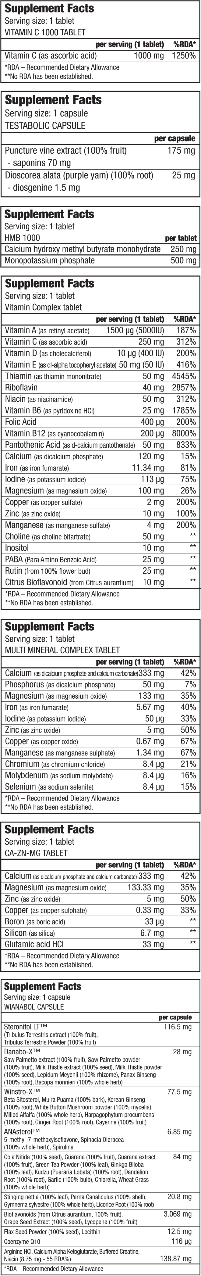 Biotech USA Wianabol Pack – это очень мощный тестостероновый бустер в пакетах, содержащий 7 различных таблеток и капсул, с высоким содержанием витаминов и минеральных веществ. Этот продукт был разработан для профессиональных спортсменов, которые поставили себе цель нарастить серьезную мышечную массу. Эффект от его использования похож на действие анаболических стероидов, это стало возможным благодаря ученым которые создали необычайно сильный состав из взаимодополняющих элементов. Здесь сочетаются четыре комплекса, которые включают в себя 44-элемента увеличивающих секрецию гормонов анаболиков в четыре раза, а эстроген понижается почти на четверть, они принимают активное участие в росте мышечной ткани.