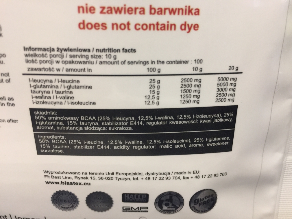 Называет Blastex Xline ВСАА чемпионом среди BCAA по соотношению цена/качество благодаря их действительно демократичной цене, вполне адекватному составу ингредиентов (пропорция BCAA аминокислот 2:1:1), и на наше искреннее удивление данный продукт обладает вполне нормальным вкусом и растворимостью! Почему мы удивлены этим фактом? Потому что в бюджетных BCAA, протеинах и гейнерах в первую очередь страдает вкус и растворимость, даже если состав качественный. Но Blastex своим великолепным продуктом Xline ВСАА разрушил этот стереотип в корне! Что очень кстати для конечного потребителя с учетом курса валют и цен на рынке спортивного питания.