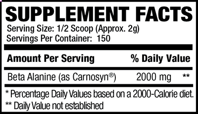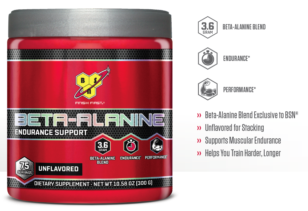 BSN в бета-аланін має неймовірну 3.6G бета-аланін суміш на порцію, що представляє собою унікальне поєднання CarnoSyn бета-аланін і бета-аланін HCI, що є ексклюзивним для BSN. Щоб забезпечити максимальну гнучкість, BSN Бета-аланін є непріправленний для укладання, так що ви можете живити свій режим після тренування або додати його в свій улюблений перед тренуванням або внутрішньо-тренування для ще більшого бета-аланін!