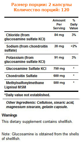 Glucosamine Chondroitin (глюкозамин хондроитин) MSM этоотличный комплекс полезных веществ для ваших суставов от компании Doctor's Best. В составе препарата используется сульфат глюкозамина калия без натрия, хондроитин, сульфат и еще чистый MSM. (Lignisul MSM). Благодаря такому богатому составу этот препарат способен позаботится о Ваших суставах, других соединительных тканях, волосах, ногтях и коже. Если вы хотите чтобы Ваши суставы почувствовали себя здоровыми глюкозамин хондроитин Вам просто необходим!