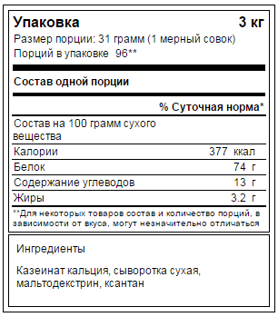 Упаковка: 3000 грамм. Порций: 96.