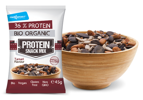 Protein Snack является органическим БИО-продуктом, который не содержит глютен и генетически модифицированные организмы (ГМО). Он отлично подойдет для веганов а его ингредиенты проходят прожарку с помощью горячего воздуха без добавления жира.