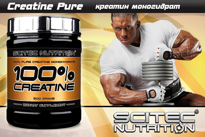 Scitec Nutrition 100% Creatine (Скайтек Нутришн 100% Креатин) - креатиновый продукт спортивного питания. 100% Pure Scitec Creatine Monohydrate произвел революцию среди спортивных добавок в начале 90-х годов, показав хорошие результаты. Креатина отвечает за предоставление фосфатной группы мышцам для регенерации и служит клеточным запасом энергии для мышечной работы. Кроме того, креатин может увеличивать объем клеток, запуская синтез мышечных белков. Это ведет к значительному увеличению размеров и силы мышц.