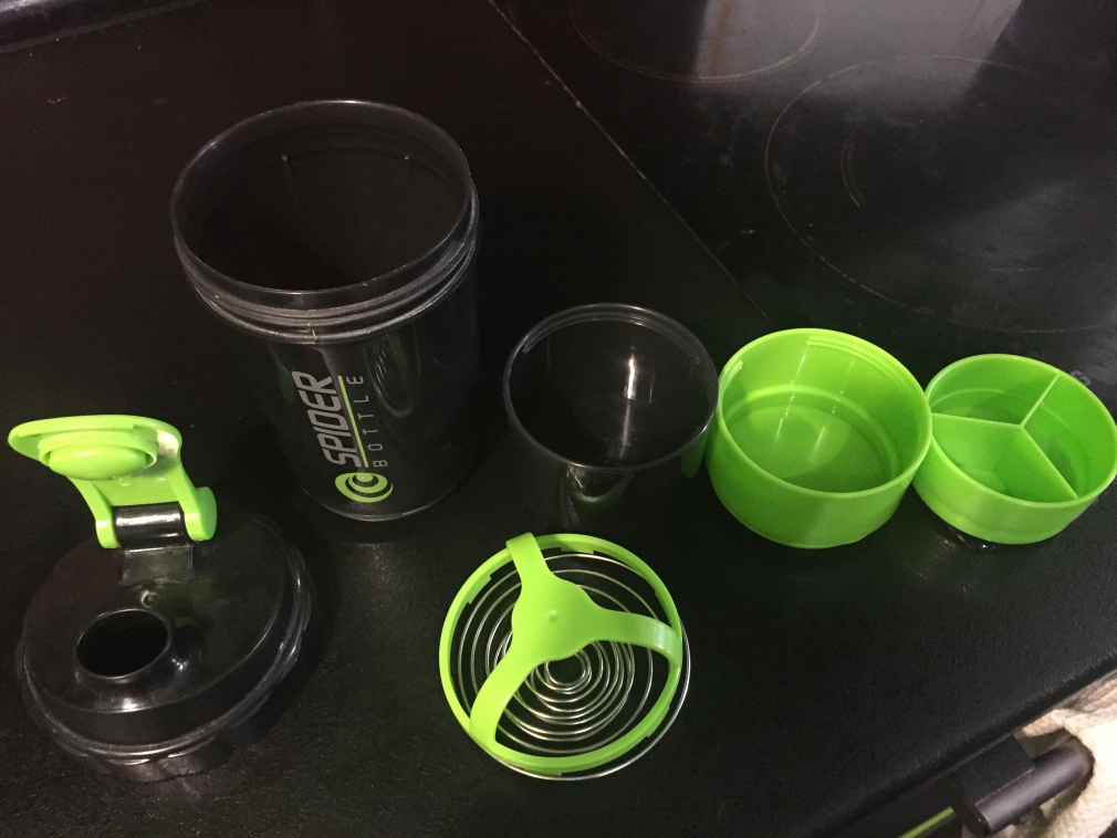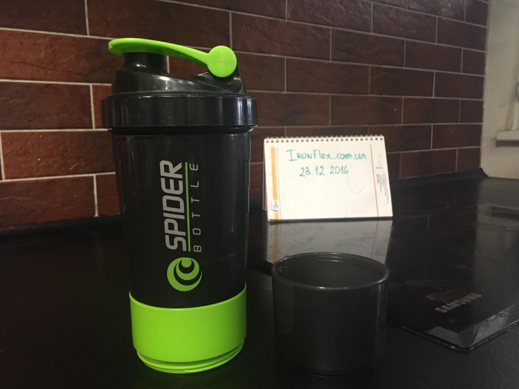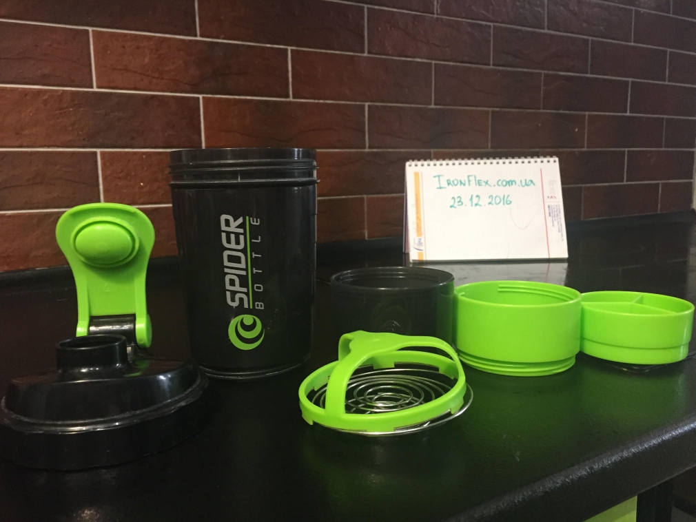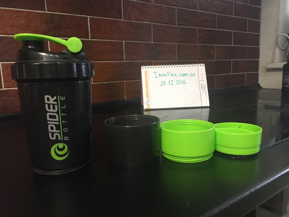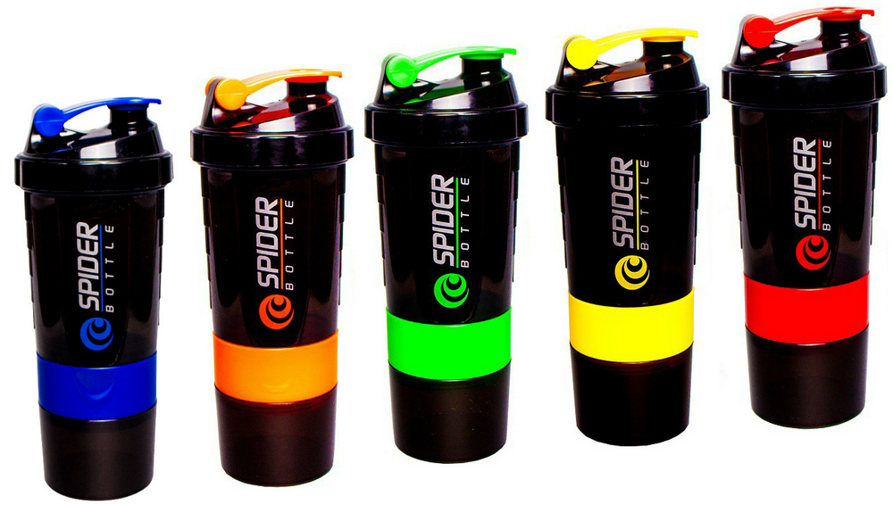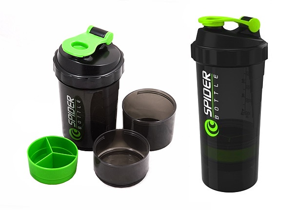 Spider Bottle Shaker – трёх компонентный шекер от компании Spider Bottle. Благодаря дополнительному контейнеру можно взять с собой добавочную порцию напитка (150 мл) или порошка для его приготовления. Трех-секционная ёмкость для таблеток и капсул вместит необходимые порции BCAA, креатина или других добавок в таблетках и капсулах, необходимых до или после тренировки.