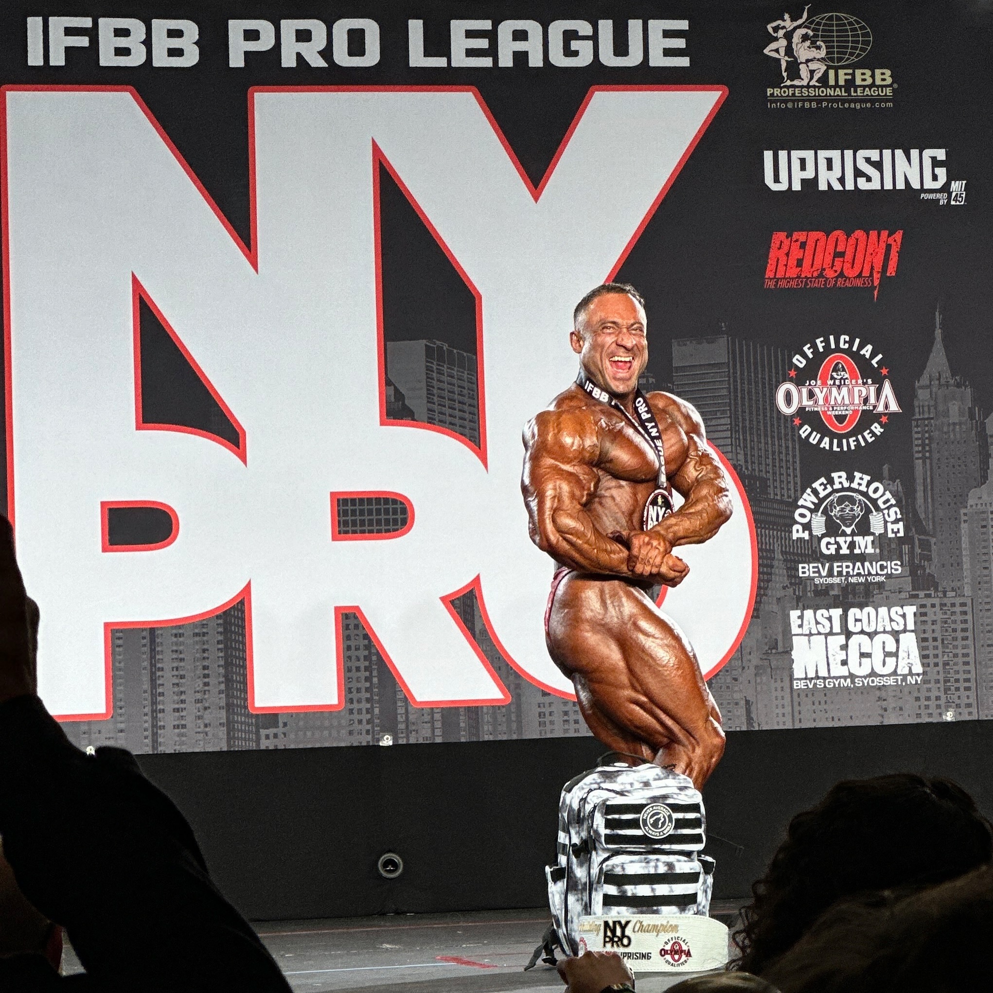 Олег Кривый — New York Pro 2024, победитель (212 Division). Фото с финала, стартовый №19.