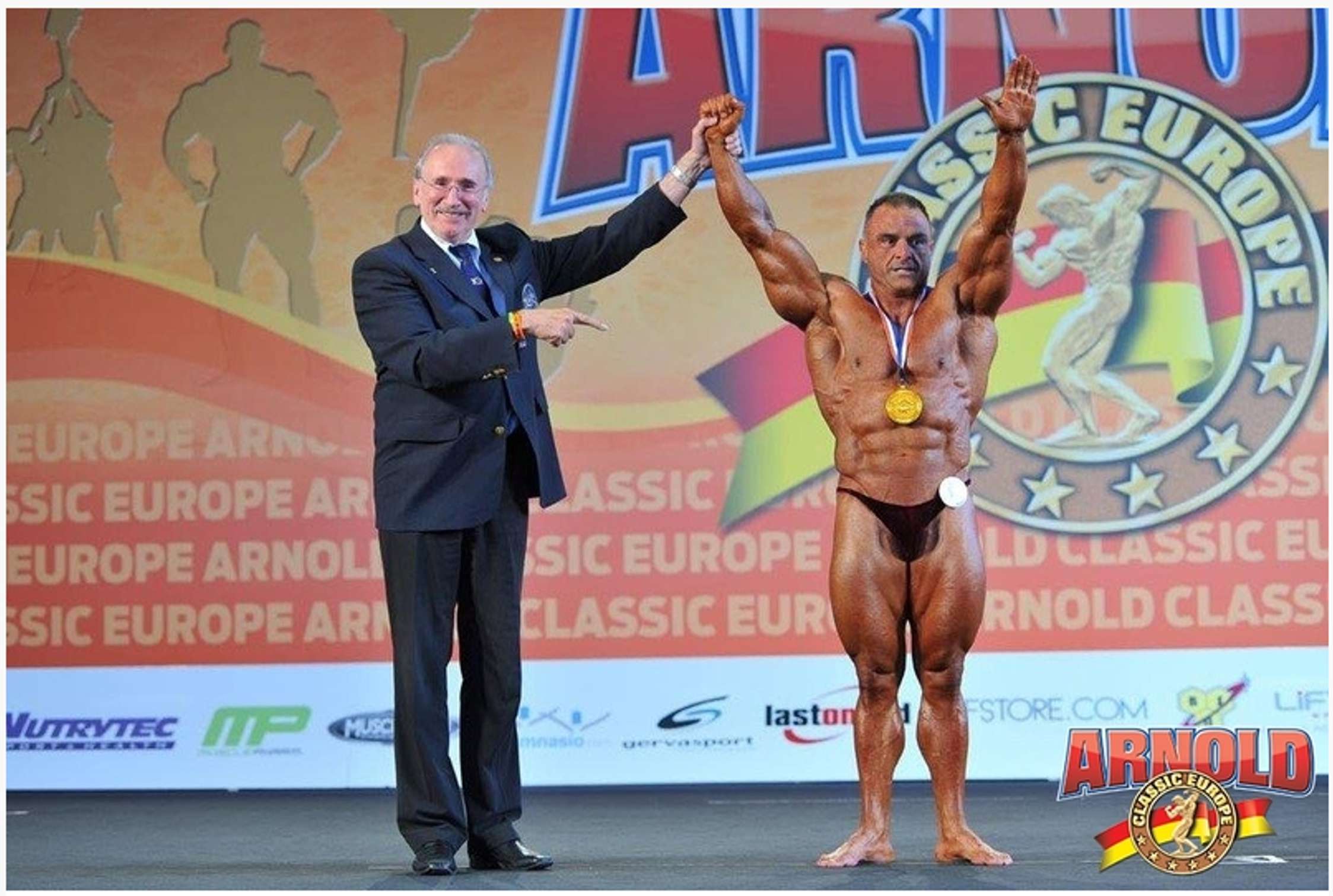 Представитель страны хозяйки чемпионата Рамон Гонсалес (Ramon Gonzales), Испания, в 2012 году был абсолютным победителем среди ветеранов на Арнольд Европе, затем завоевал в 2014 году золотую медаль на Чемпионате Европы. Теперь он вновь появился в Мадриде, но ... в этот раз встретил очень серьезного соперника: Жилберто Цириело (Gilberto Ciriello), Италия, который в прошлом году не попал в топ-6 в Мужском Бодибилдинг до 100 кг. Теперь он переместился к ветеранам до 90 кг и после проигранного Гонсалесу первого тура 7: 8, выиграл следующие два раунда сместив Рамона на второе место.