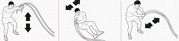 Пара толстенных (а то и намеренно утяжеленных!) морских канатов - это отличный инструмент для развития подлинного атлетического статуса мускулатуры. С этими канатами положено «гнать волну». Однако если у вас хватит силенок, попробуйте дополнить «классику» упражнениями посложнее.